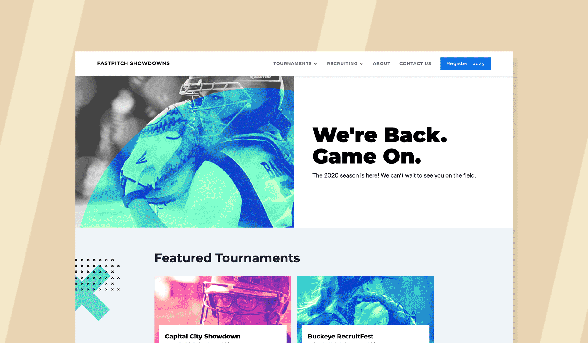 Fastpitch Showdowns is a softball tournament circuit dedicated to putting athletes first, offering skill competitions, and college recruitment programs. We were tasked with redesigning their website to reflect the athletes' youthful and energetic spirit.